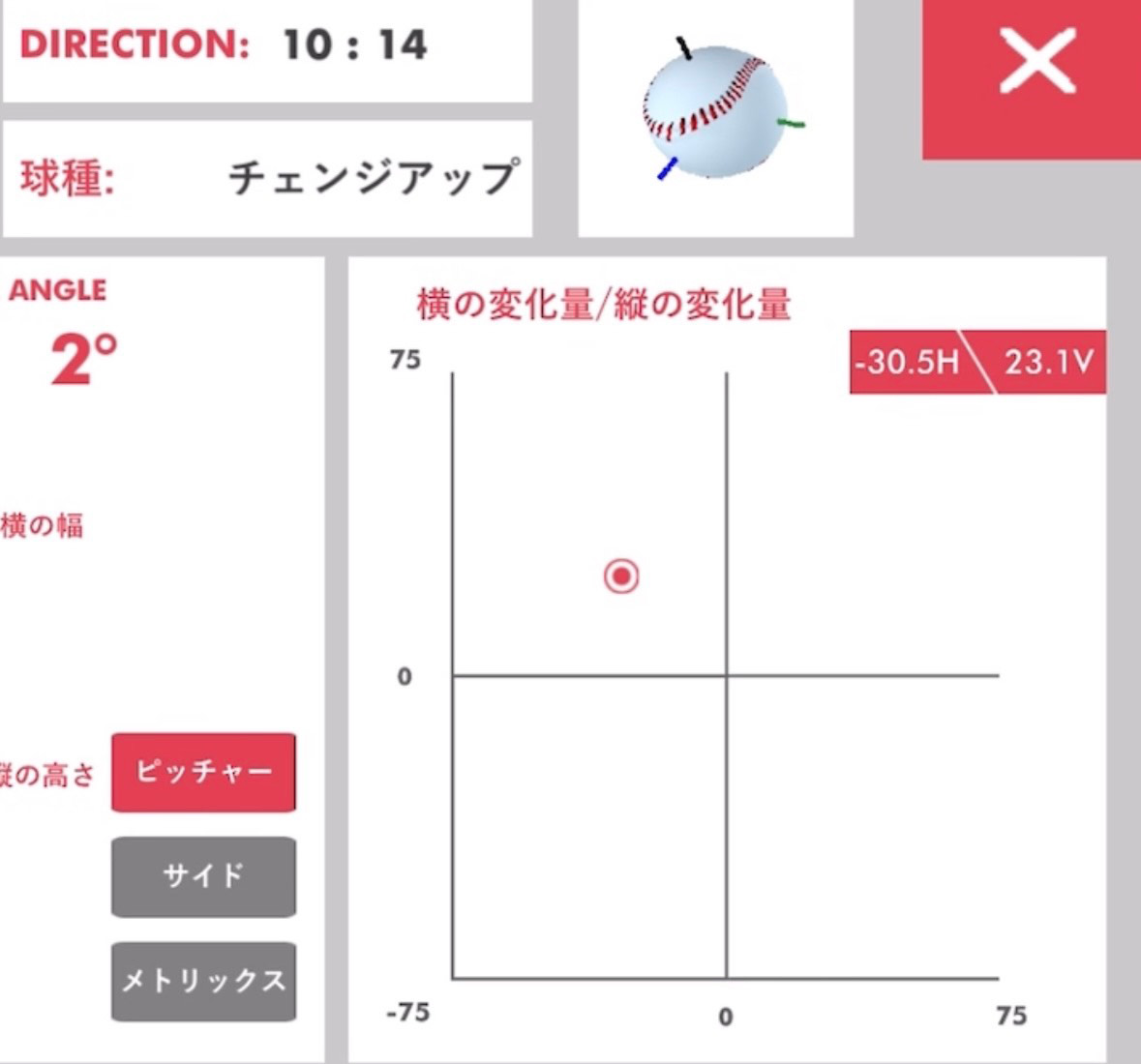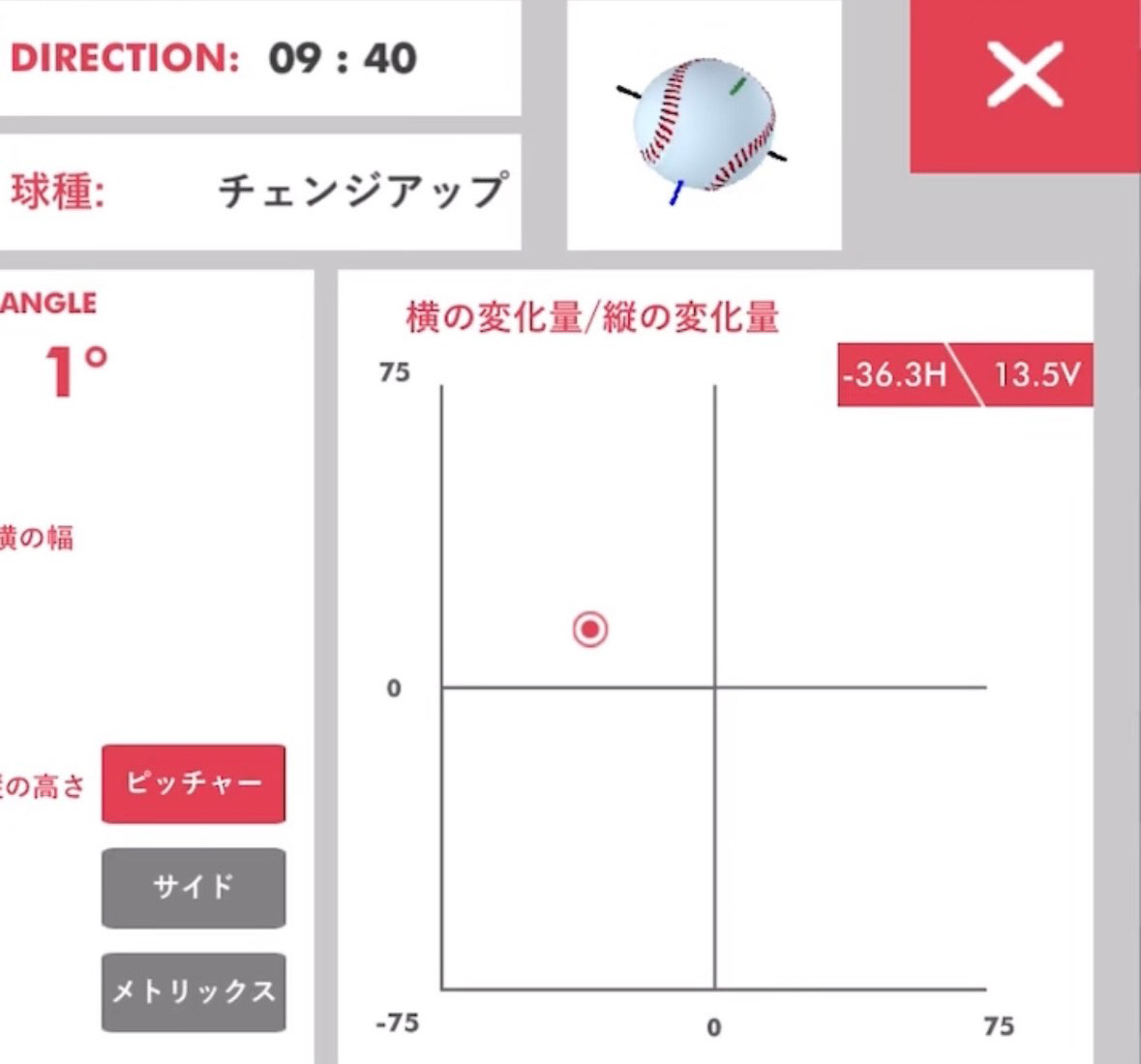 回転方向を9時に近づけることでより落ちて曲がるように改善