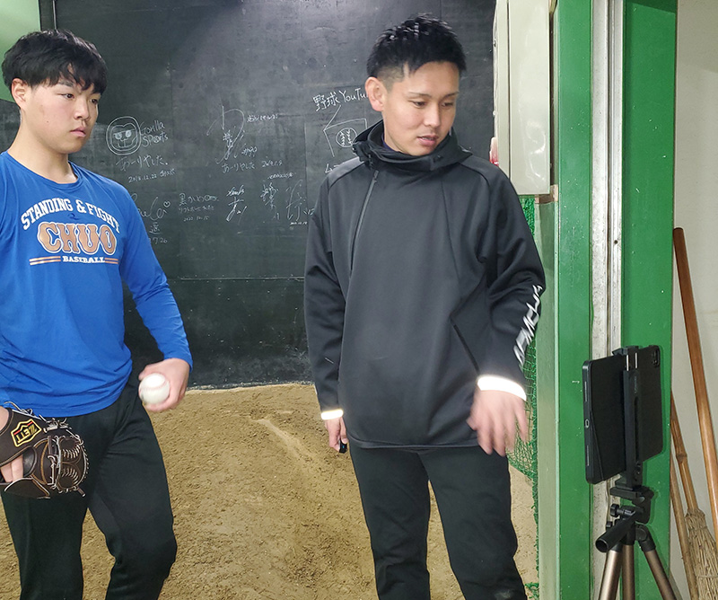 - ハイスピードカメラによる撮影でリリースや投球フォームを分析